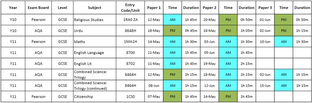 Summer GCSE Exams